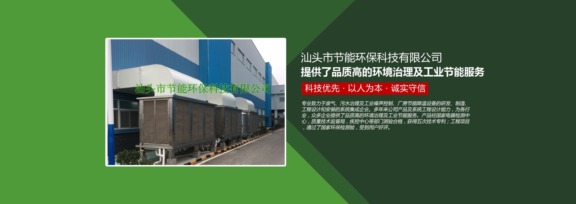 汕頭市節(jié)能環(huán)保科技有限公司創(chuàng)建于1998年,是一家專業(yè)致力于廢氣、污水、粉塵、噪聲治理,廠房節(jié)能降溫設備的研發(fā)、制造、工程設計和安裝的系統(tǒng)集成企業(yè)。多年來公司產(chǎn)品及系統(tǒng)工程設計能力,為各行業(yè),眾多企業(yè)提供了品質高的環(huán)境治理及工業(yè)節(jié)能服務。產(chǎn)品經(jīng)國家電器檢測中心,質量技術監(jiān)督局,疾控中心等部門測驗合格,獲得五次技術專利;工程項目通過了國家環(huán)保檢驗檢測,受到用戶好評。